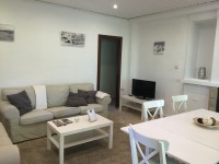 Al entrar, nos encontramos con el salón comedor con TV y sofá-cama. Dispone de 3 dormitorios, uno de ellos con cama de matrimonio, otro con dos camas individuales y otro con sofá-cama. Además de 2 baños con bañera. Decoración sencilla y funcional con varios armarios empotrados de gran capacidad.
